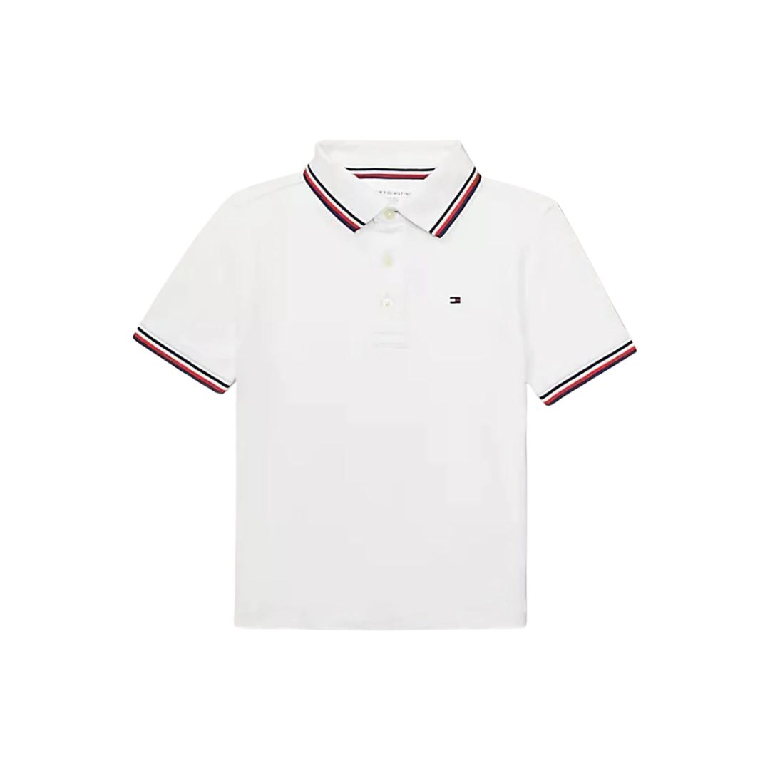 CAMISA POLO TOMMY INFANTIL BRANCA COM LISTRAS NA GOLA