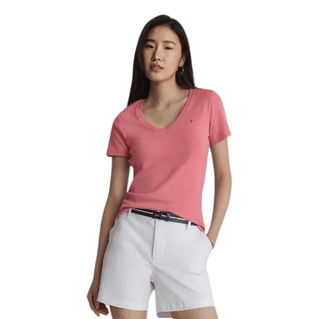 CAMISETA CASUAL FEMININA TOMMY - GOLA V ROSA