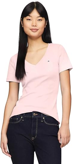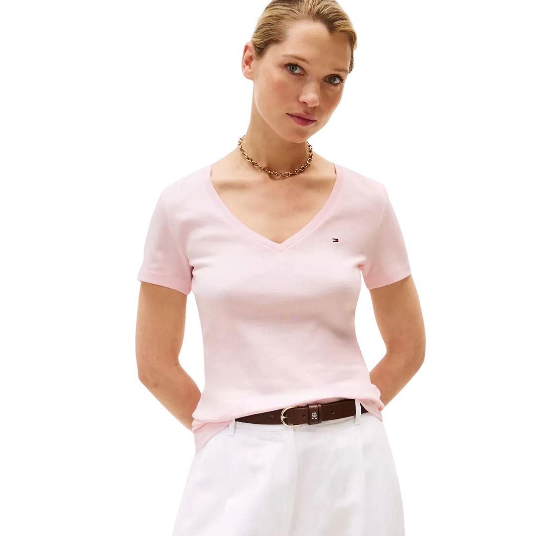 CAMISETA FEMININA TOMMY GOLA V ROSA CLARO