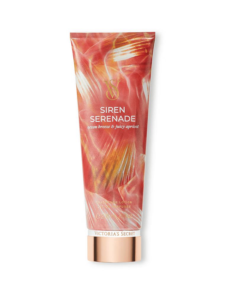 A loção Siren Serenade combina a refrescância da brisa do mar com a doçura envolvente do damasco suculento, proporcionando hidratação intensa e uma fragrância marcante que dura o dia todo.